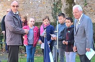 Après le dépôt de gerbe, les enfants ont lu un petit texte devant les anciens combattants.