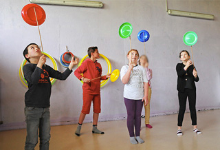 Le matin, nous avons visité une école de cirque, « Cirqu'en Bulle », où nous avons pu faire plein d'activités : des roulades, du trempoline, du trapèze, du monocyle, du jonglage... C'était super !